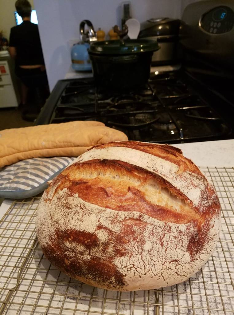 In the past year, I’ve made at least one, sometimes two loaves per week, more if I’m gifting to friends. I nicknamed my operation “Lincoln Bakery Brooklyn” (after the place we call home) and learned about the flavor profiles and protein content of red fife, einkorn, rouge de Bordeaux, high mountain hi gluten and hard white whole wheat — all types of flour which this all-purpose-using gal never knew existed.