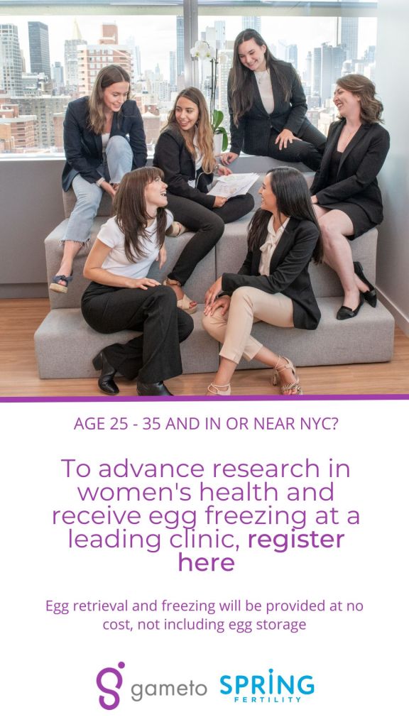 For those in New York City seeking financially friendly egg-freezing—or if you’re interested in helping advance women’s health practices—Gameto is providing an opportunity to receive egg-freezing at no cost, as part of their research.