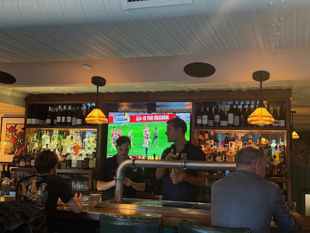 The three level venue has a basement that looks like an Aussie dive bar. The first floor, The Harbour Room, over looks the Hudson River and pays homage to the carpet in the Members Lounge at the MCG. The whole venue is a nod to Melbourne, especially Richmond bars and RSL’s. There is even a beer garden out the front.